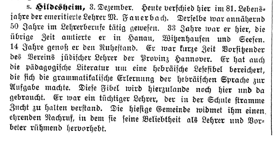 (Israelitischer Elementarlehrer) angestellt, der zugleich als Vorbeter und