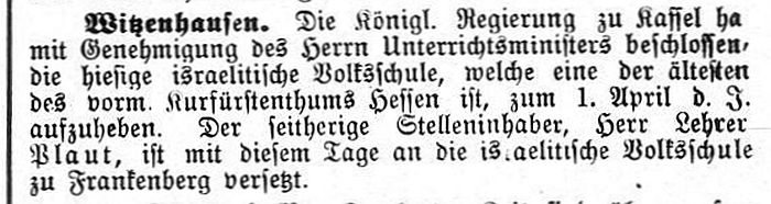 wurde das Landrabbinat nach Kassel verlegt. Witzenhausen war danach nur noch