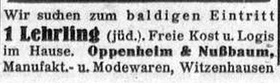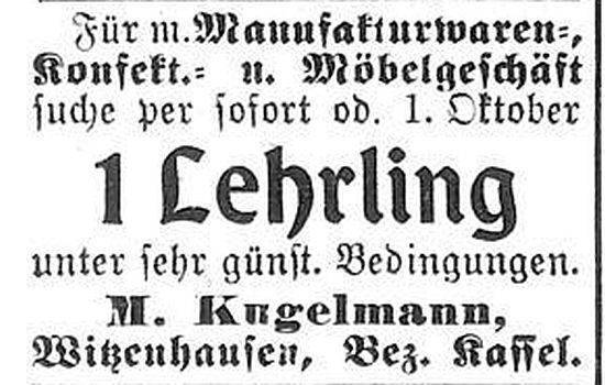 Jude dem Witzenhausener Schultheißen 2 Gulden. 1461 bezahlte dieser dem Juden