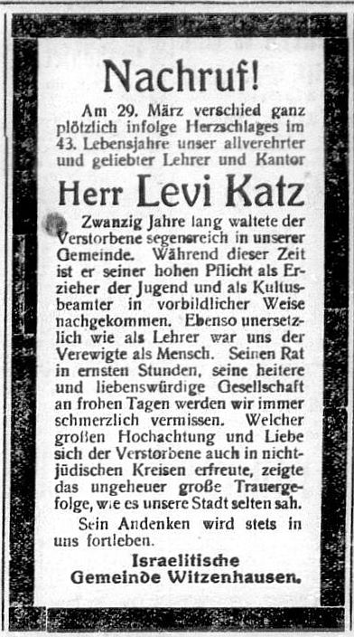 Frankenberg); Levi Katz (Lehrer von 1902 bis zu seinem Tod