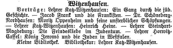 Witzenhausen. In: Zeitschrift für hebräische Bibliographie Bd. VIII 1904. S.