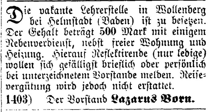 Als Lehrer werden genannt: um 1865 Lehrer Stern, um 1869 Lehrer