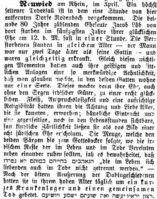 Zum Tod der Eheleute Jacob Löb und Frau in Rodenbach