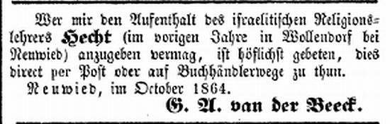 Suche nach dem Religionslehrer Hecht (1863 Lehrer in