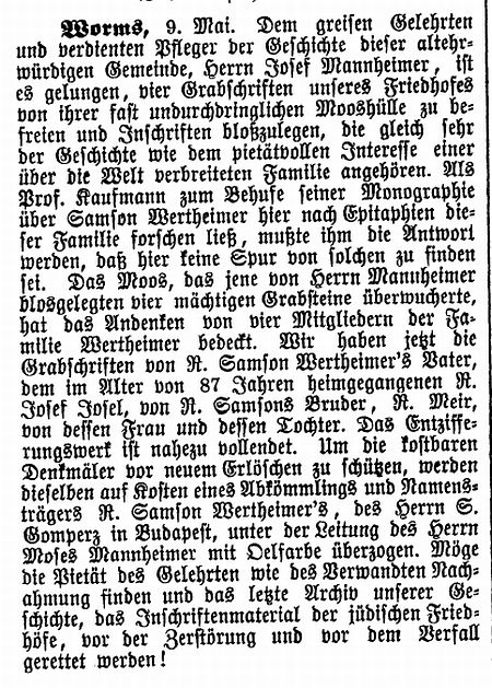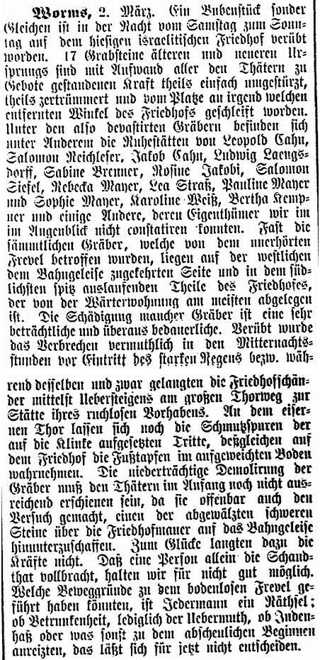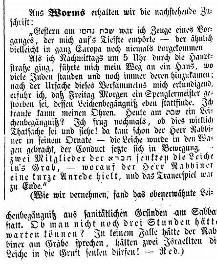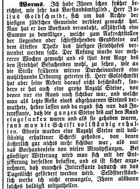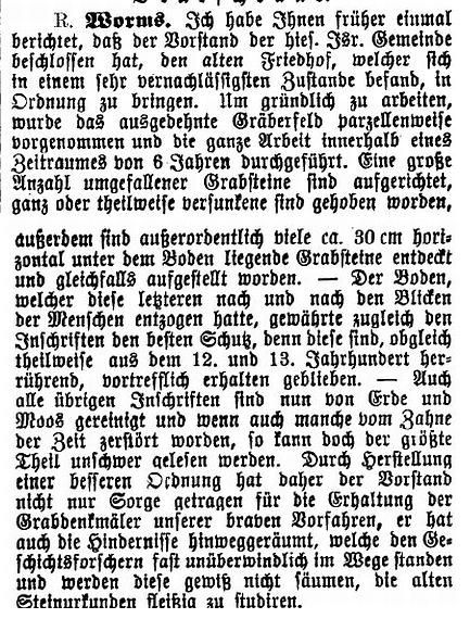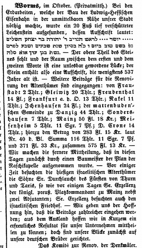 vom 24. Oktober 1853: "Worms, im Oktober (Privatmitteilung).
