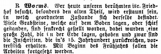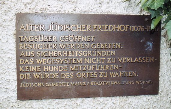 Wormser Eigenart ist, dass die Grabsteine alle nach Süden ausgerichtet sind. Unweit