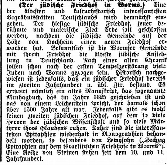 - Zum alten jüdischen Friedhof in Worms ("Heiliger Sand")