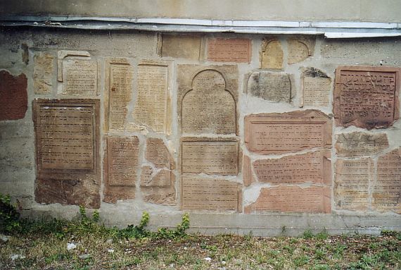 der Friedhofswand eingemauert. Der Synagogendiener Juspa Schammes (1604 bis