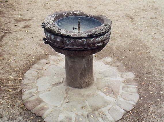 Im Vorhof des Friedhofs steht ein Brunnen für die