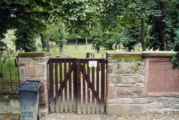 Eingangstor ist das Totengebet als Sandsteintafel in die Mauer eingelassen. Eine