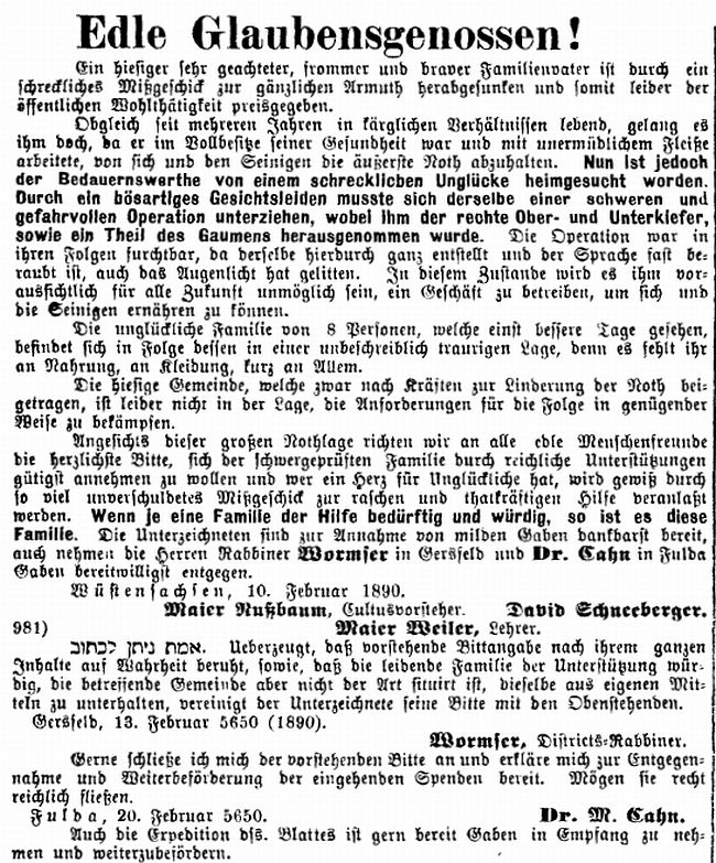Gersfeld (bestand bis 1866). Zur jüdischen Gemeinde gehörten auch die im
