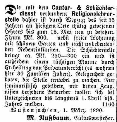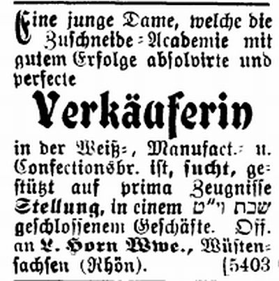 jüdische Personen in Wüstensachsen. 1730 wurden 19 jüdische Familien