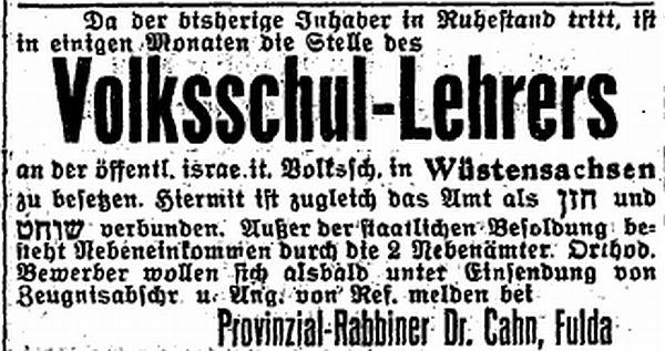 rabbinate of Fulda. It maintained an elementary school from around 1860 until