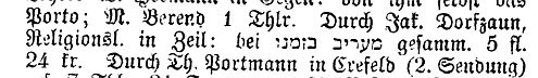 "Der Israelit" vom 8. März 1865: "Durch Jakob Dorfzaun, Religionslehrer