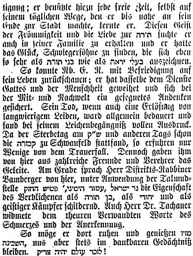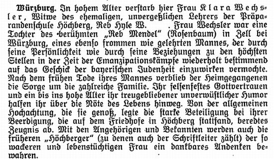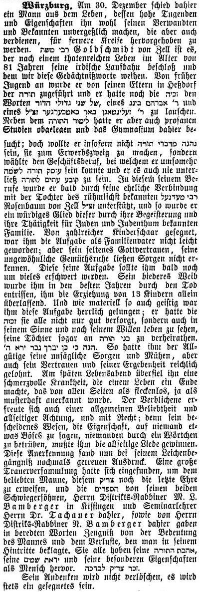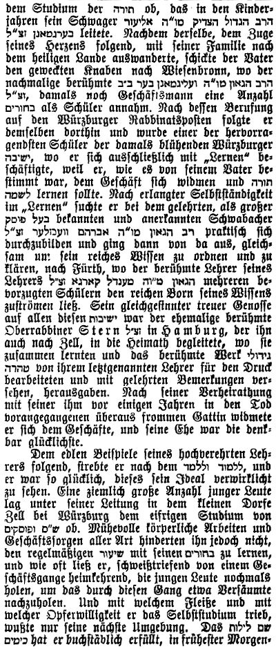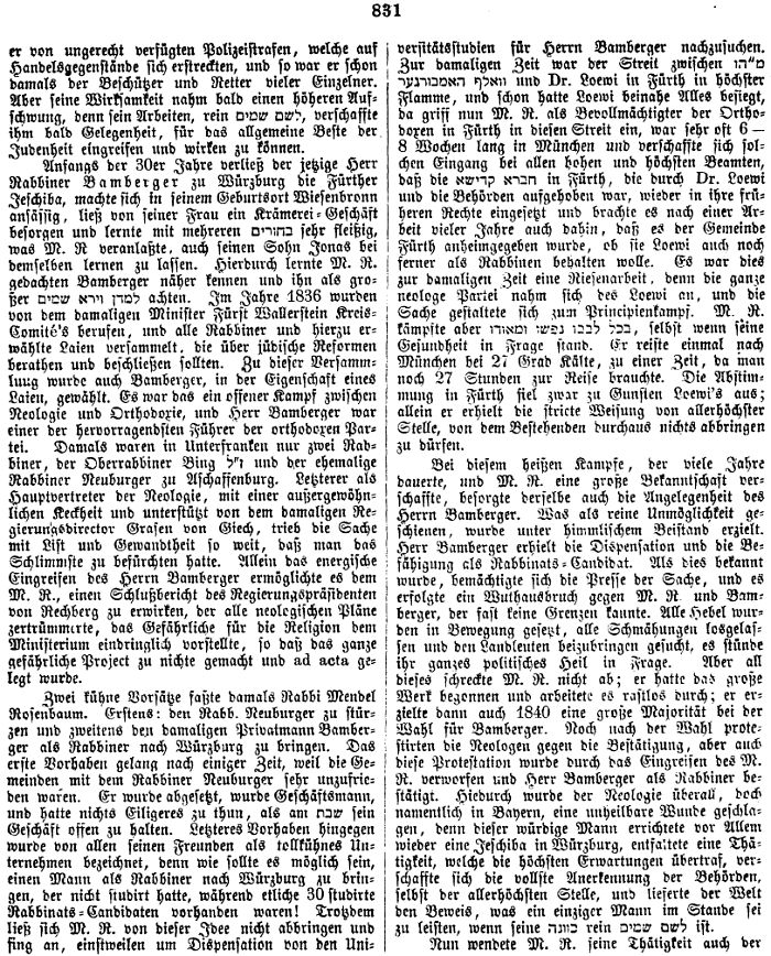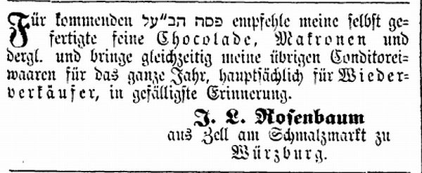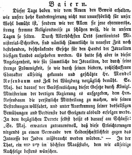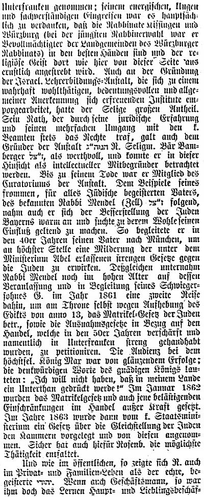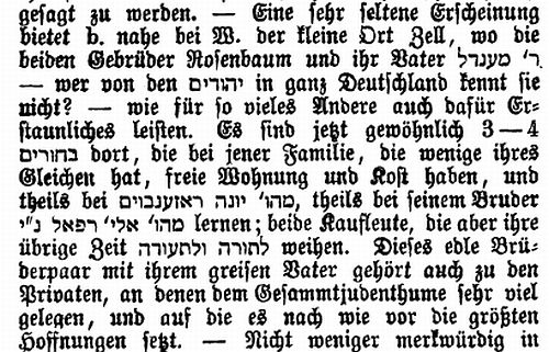 Seligmann Bär Bamberger nach Würzburg. Vater und die Söhne Rosenbaum genossen