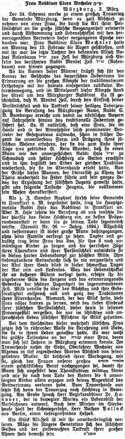 Artikel in der "Allgemeinen Zeitung des Judentums"
