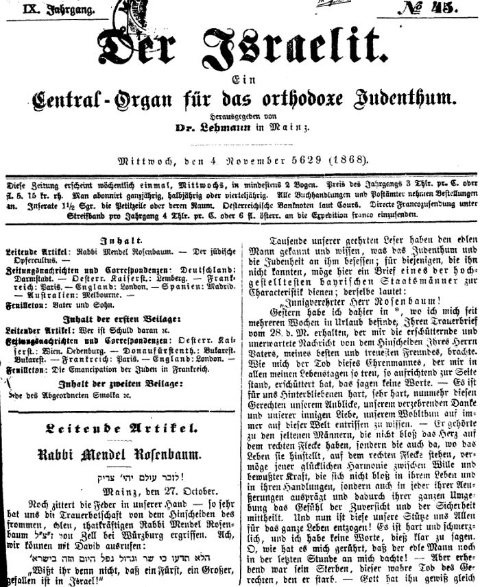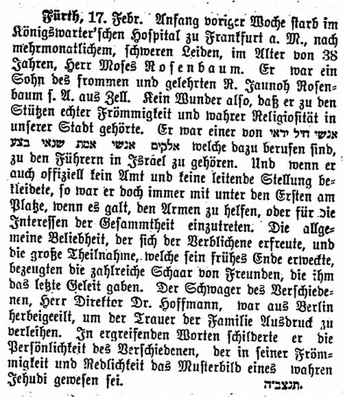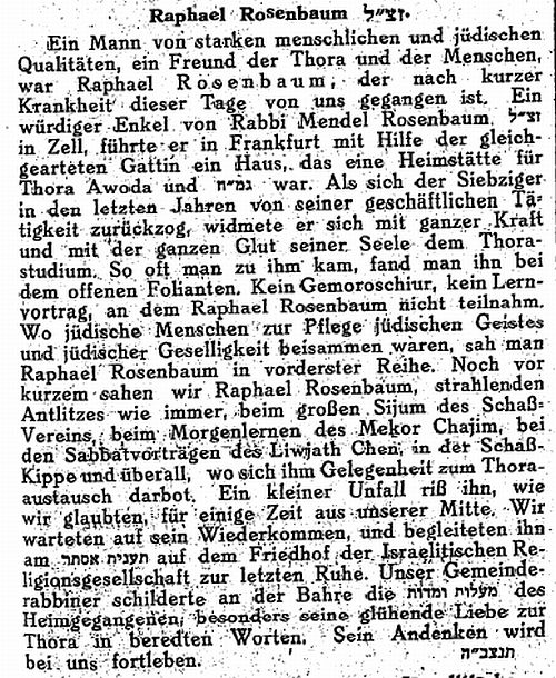 später Rabbiner in Paris. Enge Beziehungen bestanden zwischen den Rosenbaums