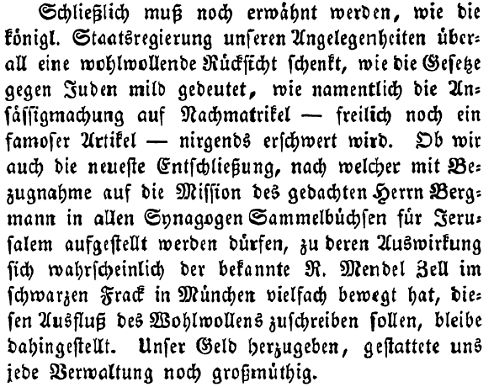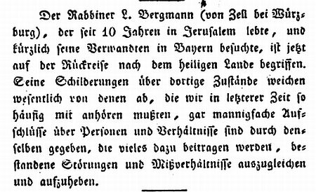 vom 9. Dezember 1845: "Der Rabbiner K. Bergmann (von Zell bei
