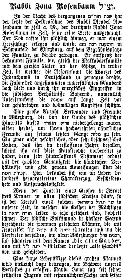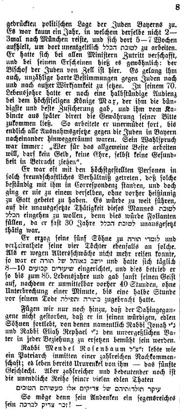 und den Würzburger Rabbinern. Mendel Rosenbaum war mit Oberrabbiner Bing eng