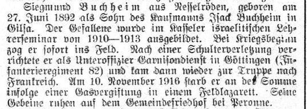 Außerdem ist gefallen: Unteroffizier Siegmund Buchheim (geb. 27.6.1892 in