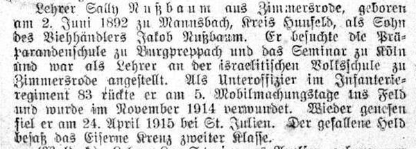Kinder), Sally Nußbaum (1913-1916, gefallen, siehe Bericht unten). Die Gemeinde