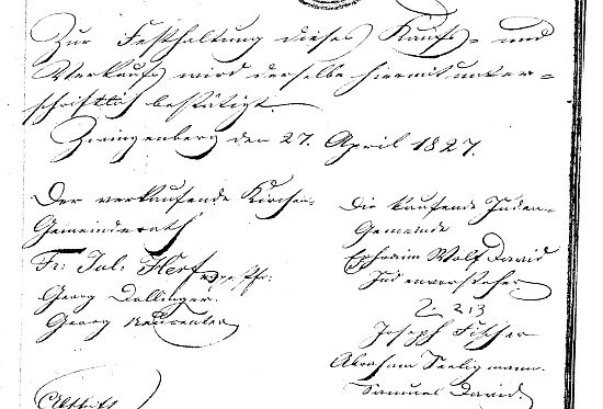 unter dem Kaufvertrag vom 27. April 1827 über den Kauf des bisherigen
