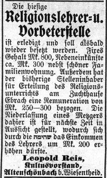 angestellt, der zugleich als Vorbeter und Schochet tätig war (Ausschreibungen