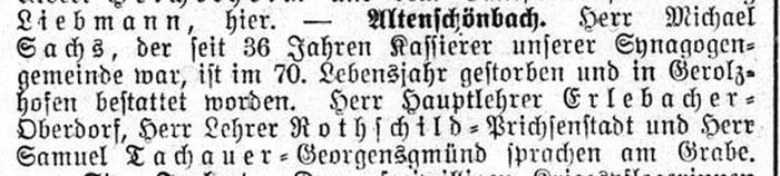 Zur jüdischen Gemeinde Altenschönbach gehörten spätestens ab 1887 auch die