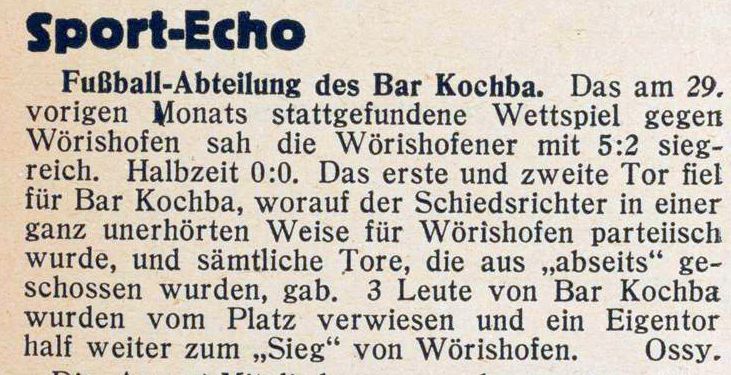 für Bar Kochba, worauf der Schiedsrichter in einer ganz unerhörten Weise für
