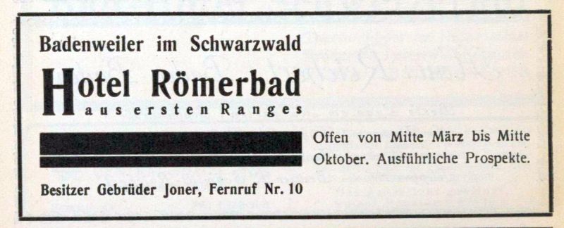 geführt von der Witwe Hemmendinger aus Basel (Anzeige 1910 s.u.).