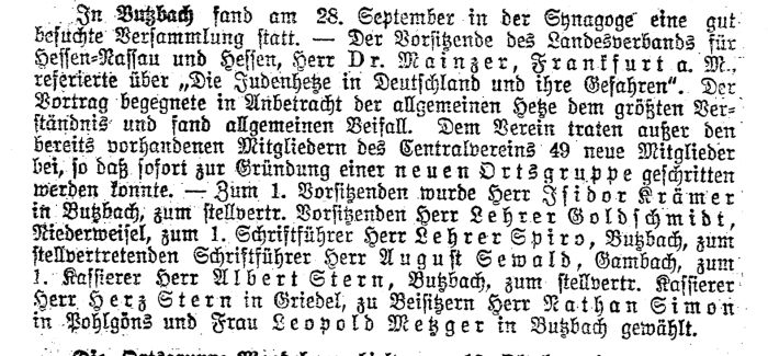 in der Zeitschrift "Der Israelit vom 29. August 1935: "Butzbach,