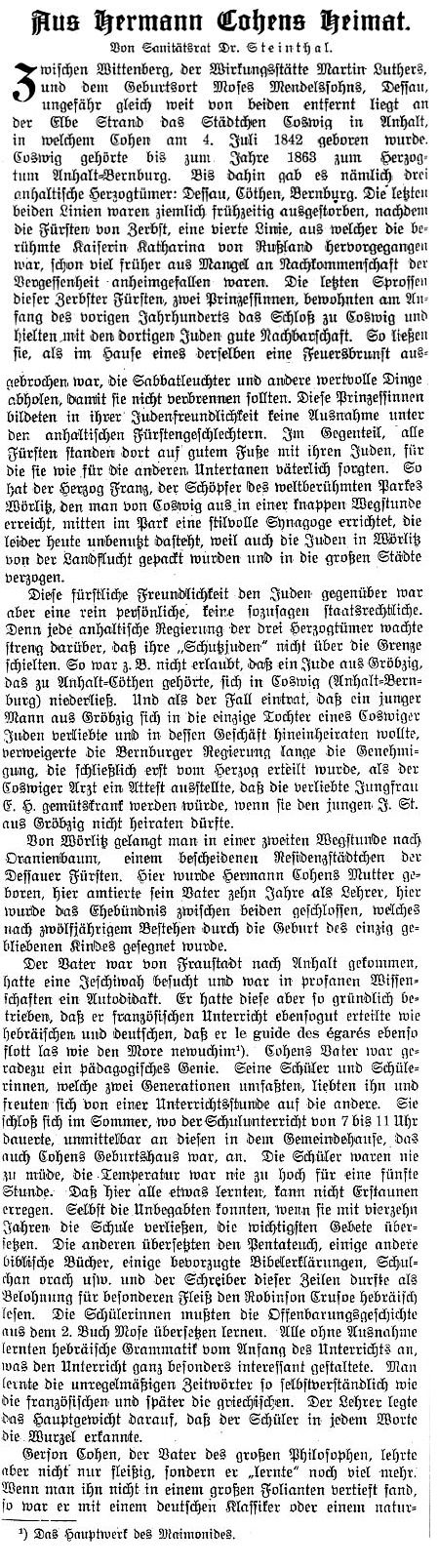 Von Sanitätsrat Dr. Steinthal. Zwischen Wittenberg, der Wirkungsstätte