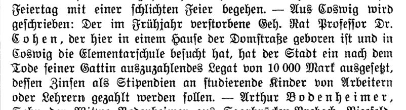 "Mitteldeutschen Zeitung" vom 10. November 1917: "Gedenken in Coswig: An