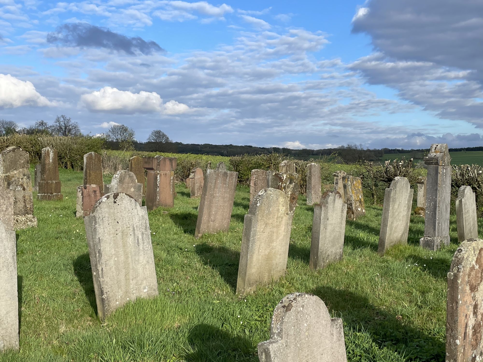 gerichteten Rückseiten der Grabsteine enthalten teilweise deutsche