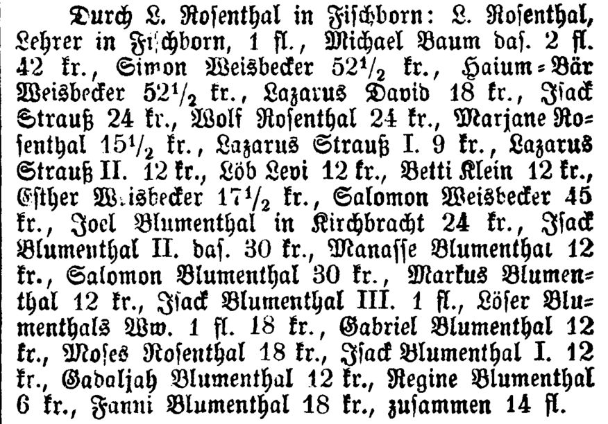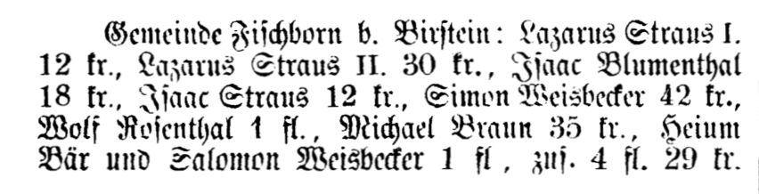 war. Um 1869/70 wird als Lehrer in Fischborn L. Rosenthal genannt. Als die Zahl