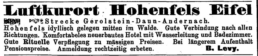 Geschäft von den Söhnen Lazarus und Heimann Levy weitergeführt. Heimann Levy verzog