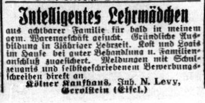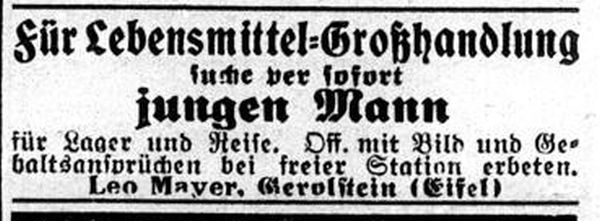 Gerolstein kam und in der Hauptstraße 37 ein Manufakturwaren- und