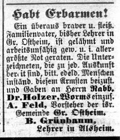 schulpflichtigen jüdischen Kinder am Ort erteilte Lehrer Max Katz aus Aschaffenburg. Er hatte auch das Schächteramt in Großostheim inne.
