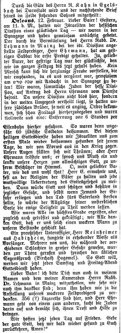 Unter den Kriegsteilnehmern 1870/71 waren zwei jüdische Männer: J.