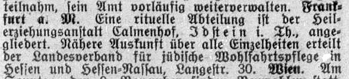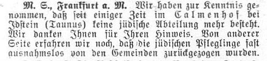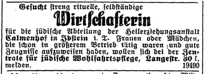 'Kalmenhof'; ältere Bezeichnung "Idiotenanstalt") eine jüdische Abteilung. Der