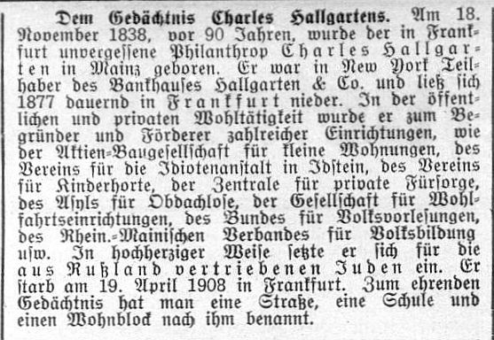 namhaften Stiftungskapitals der jüdischen Familie Charles Hallgarten