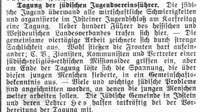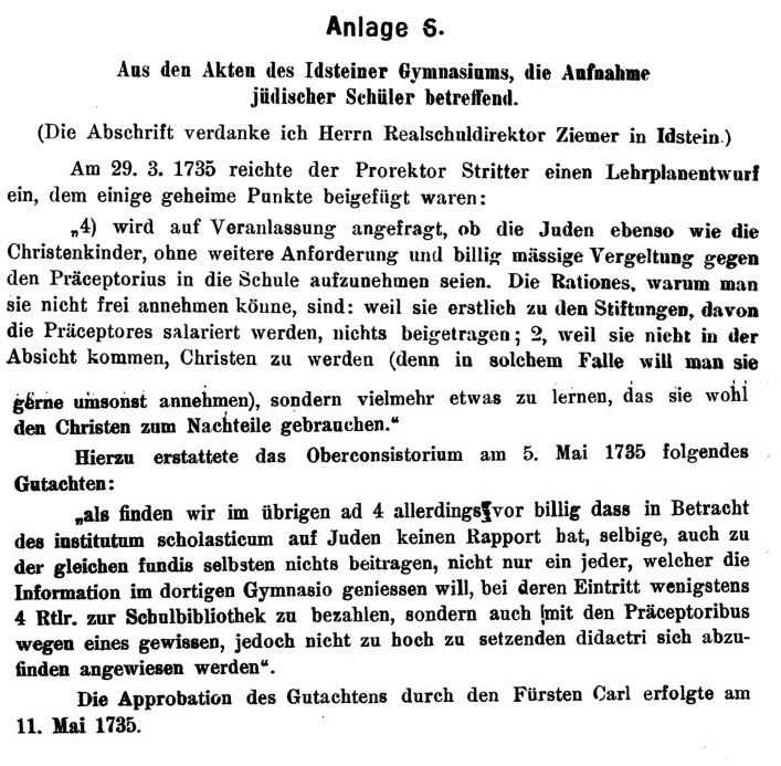 zu Idstein nimmt indessen auch jüdische Seminaristen auf und wird es in kurzer