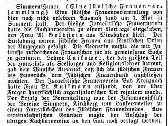 gab es u.a. den Israelitischen Frauenverein (1932 unter Vorsitz der Frau