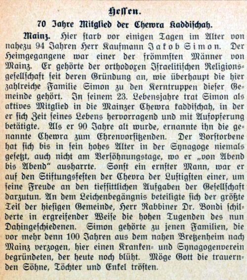 Artikel in der Zeitschrift "Der Israelit" vom 18. Mai