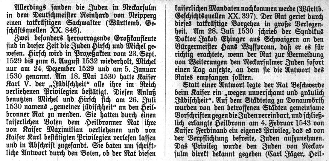also danach richten (Carl Jäger, Geschichte von Heilbronn I. 260 f).