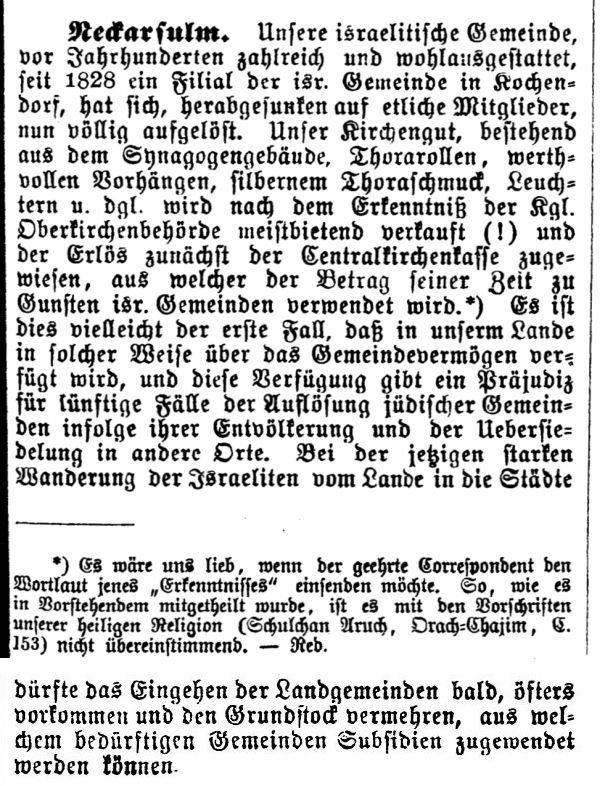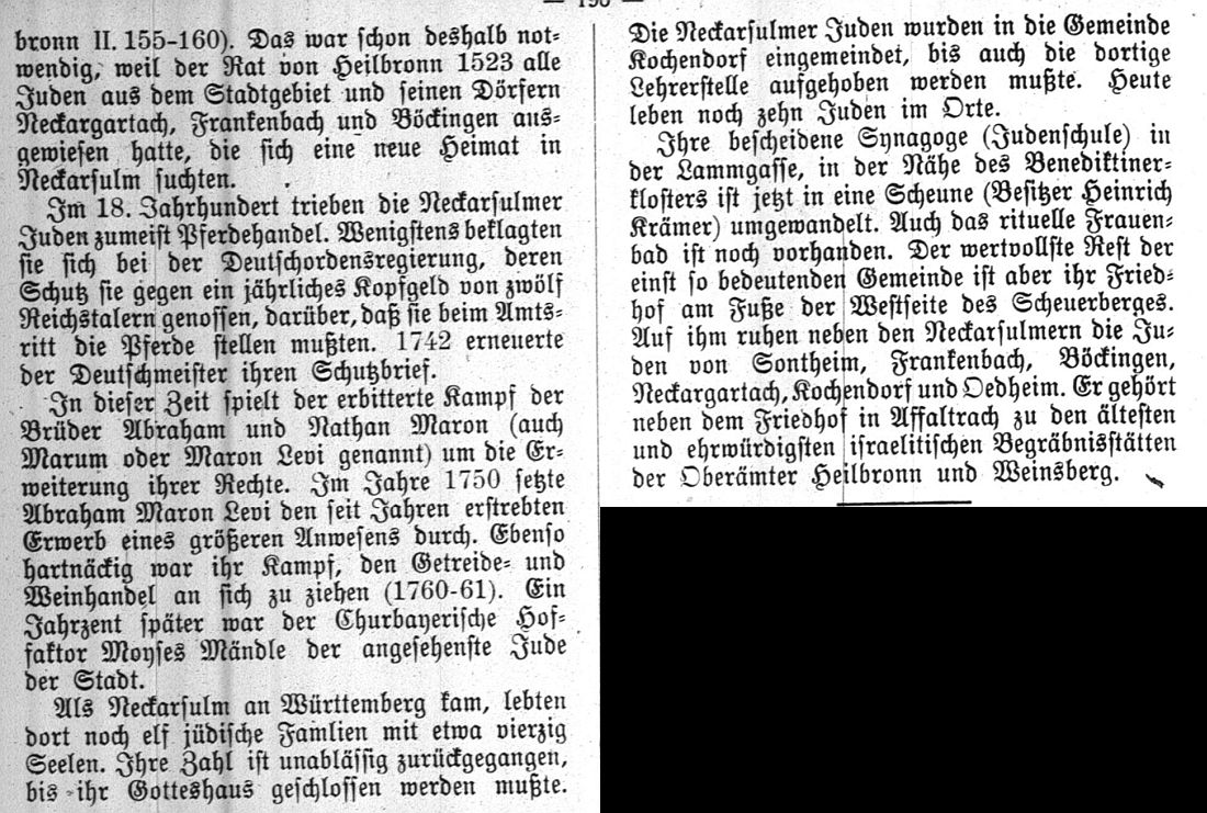 Zur Geschichte der Juden in Neckarsulm (Artikel von 1925)