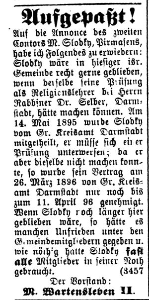 in der Zeitschrift "Der Israelit" vom 25. Juni 1885: "Ober-Ramstadt,