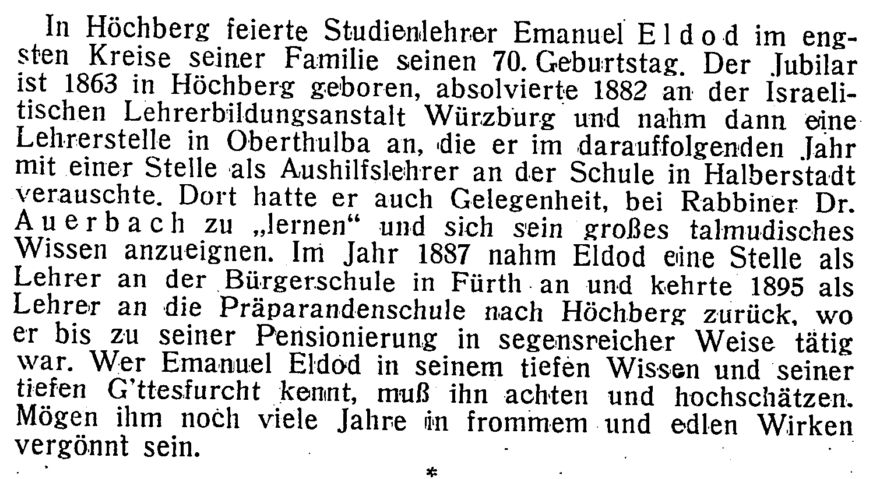 Giebelstadt); um 1892 Lehrer N. Eldod (er unterrichtete 1892 9