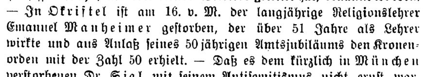 Zu Lehrer Mannheimer nach Arnsberg Bd. I S. 338-339: "Ab