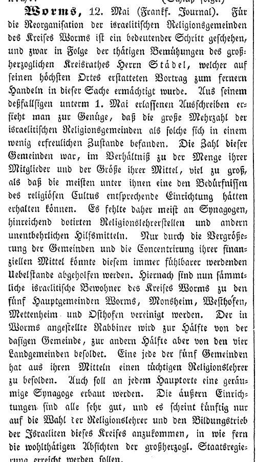 Gemeinde gehörte zum Rabbinatsbezirk Worms.